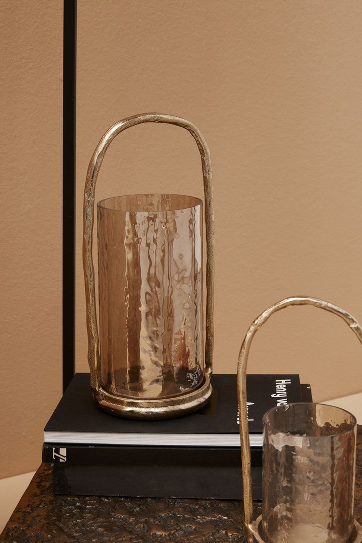 Crea un’atmosfera calda, raffinata e accogliente con il set di 2 lanterne portacandele natalizie "Sagar" di Bizzotto. Realizzate a mano in alluminio con finitura oro spazzolato e dettagli in vetro, queste lanterne tonde con manico aggiungono un tocco artigianale ed elegante ai tuoi spazi durante le feste.