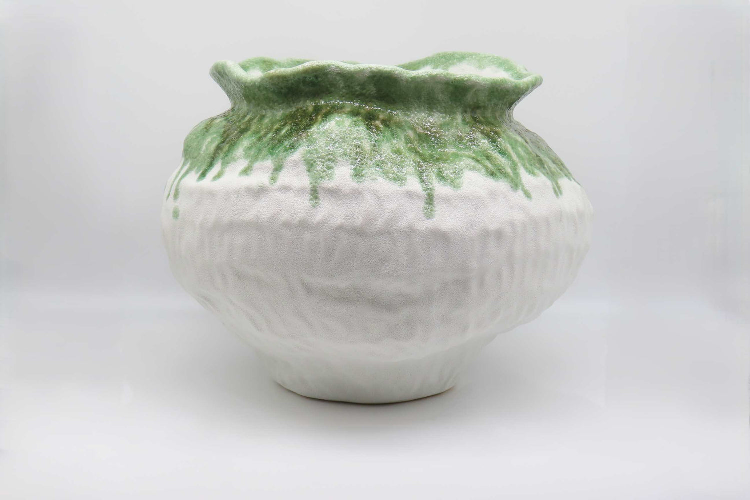 BONTURI CASA HOME DECORATION Orcio Grande H 21 Cm 39 x 39 Cm Ceramica Lava White Green