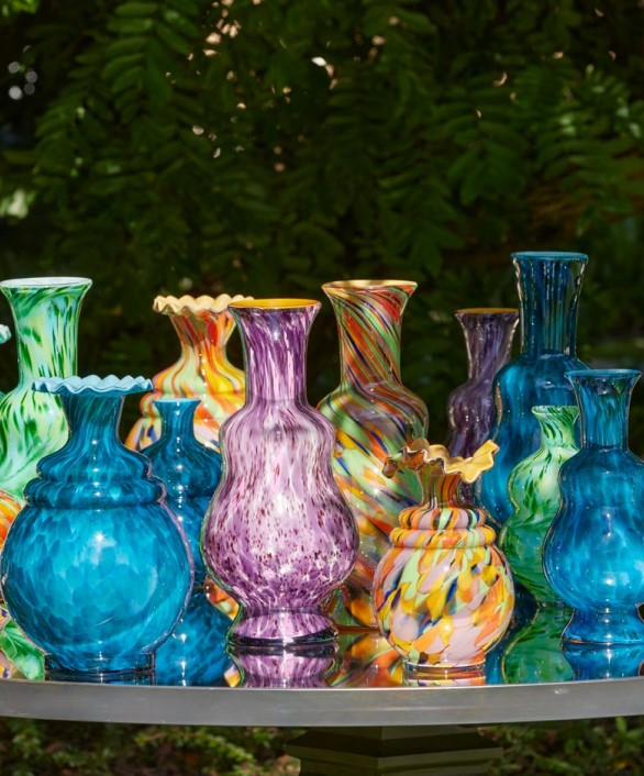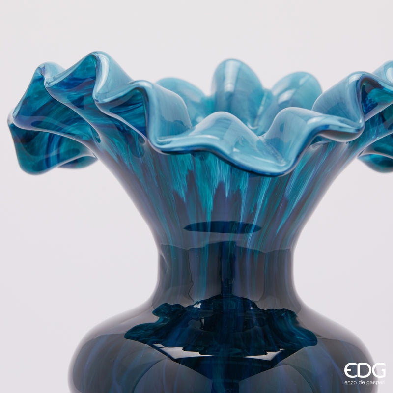 EDG Enzo De Gasperi Vaso Macula Bottiglia H 31 Cm D 19 Cm Vetro Blue