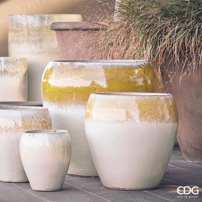 EDG Enzo De Gasperi Set 4 Pz Vaso Glaze Bombato H 68 Cm H 52 Cm H 42 Cm H 32 Cm Waterproof Dark Green