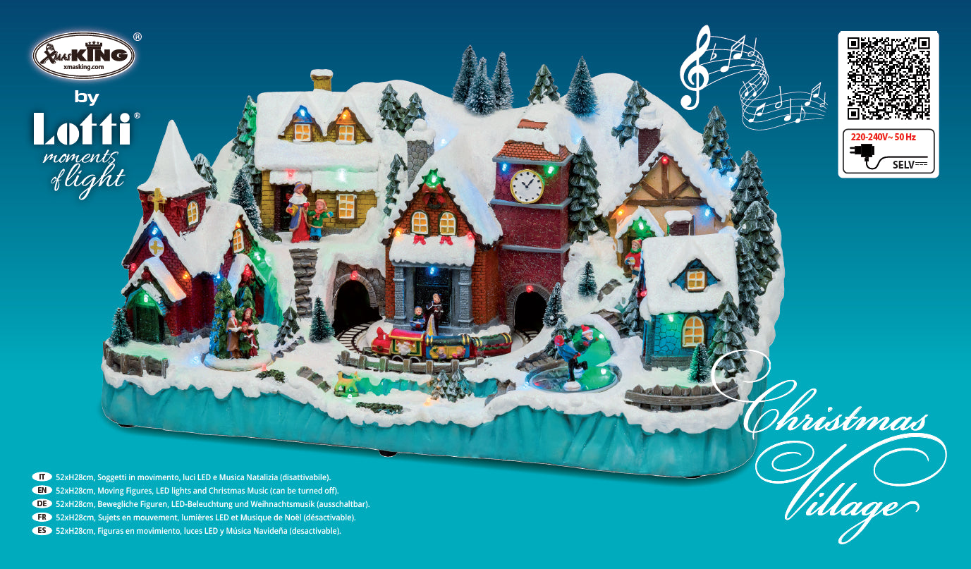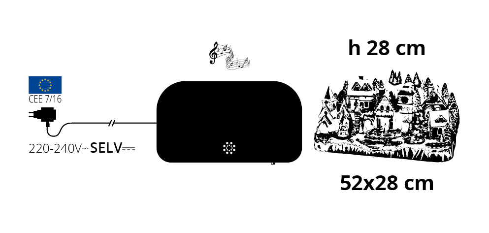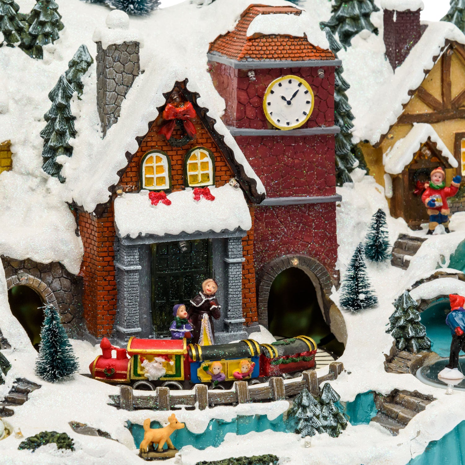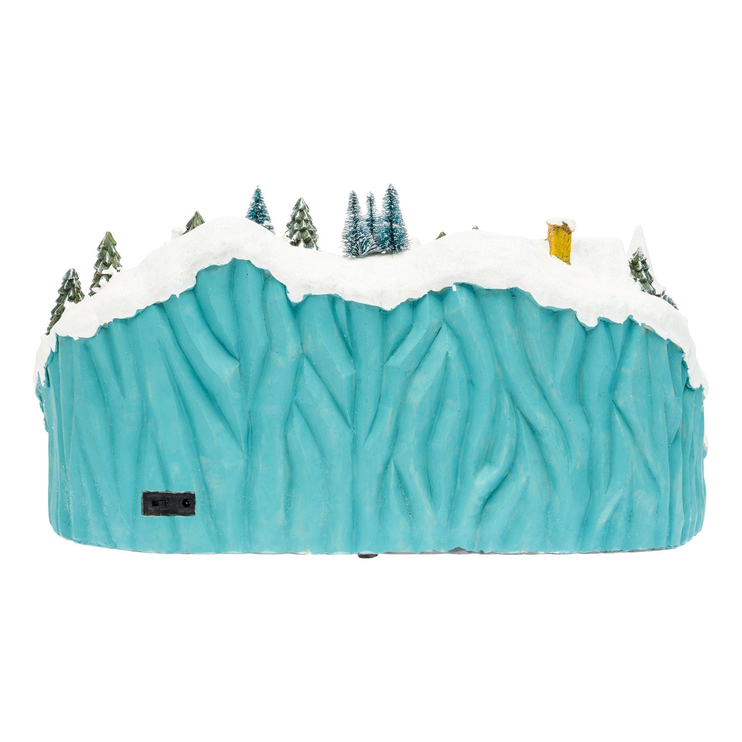 Lotti Villaggio Natale Innevato H 28 Cm D 52 Cm Pattinatori ed Albero Rotanti Multicolor