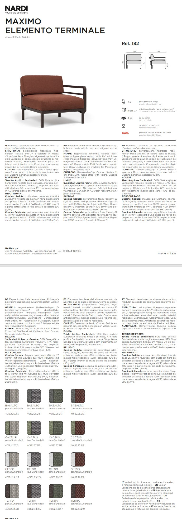 Nardi Maximo Elemento Terminale New Gesso Lava Sunbrella