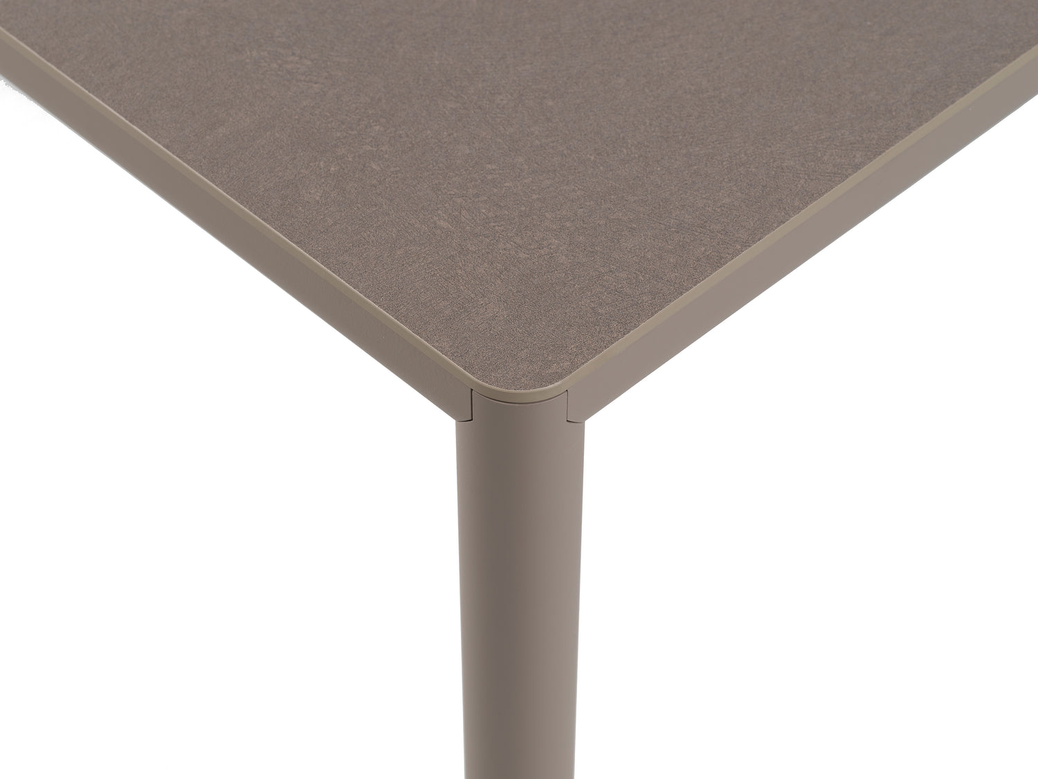 La struttura è realizzata in alluminio verniciato a sezione tonda, materiale leggero, robusto e resistente alla corrosione, perfetto per l’uso outdoor. La finitura opaca color Tortora, calda e raffinata, si integra armoniosamente in contesti moderni e naturali. I piedini regolabili assicurano stabilità e corretto livellamento anche su superfici irregolari.