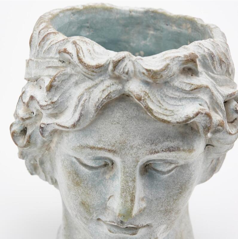 Realizzato in cemento waterproof, è resistente all’umidità e agli agenti atmosferici, caratteristica che lo rende adatto sia per soggiorno e ingresso, sia per terrazzo, balcone e giardino. La finitura grigio chiaro con effetto leggermente antichizzato esalta i dettagli del volto e si abbina facilmente ad arredi moderni, minimal, industrial o classici.