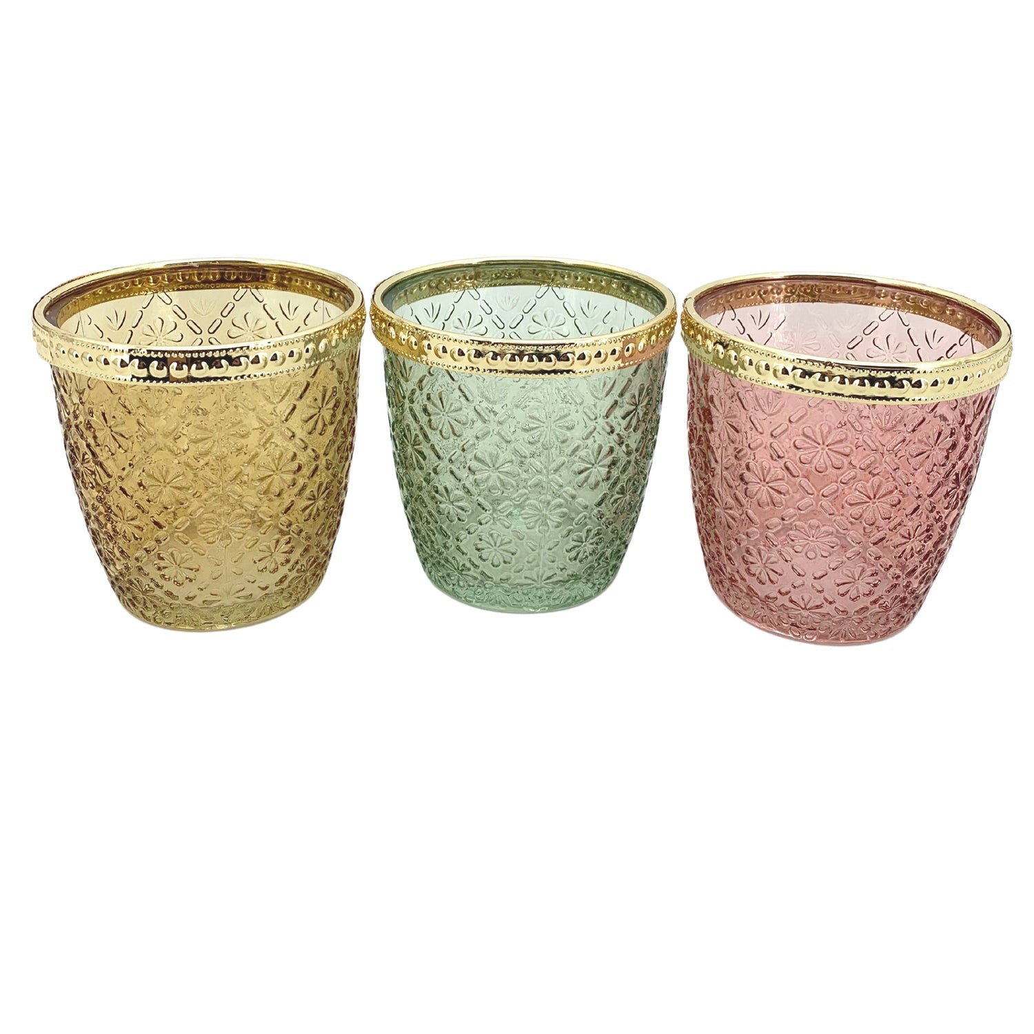 Vimin Box Srl Bicchierini Portacandele D 9 Cm H 9 Cm Bordo Oro set 3 Pz