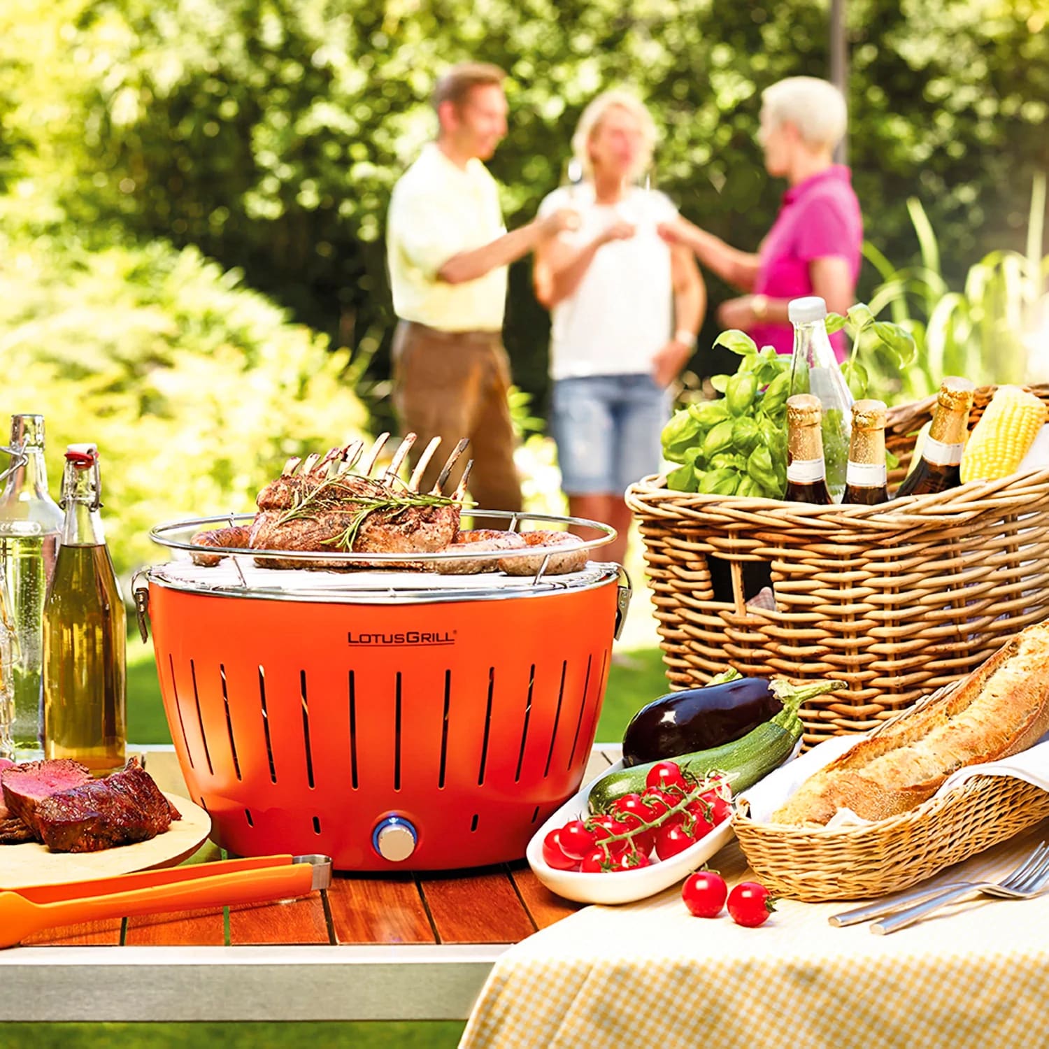 The LotusGrill XL Orange is the ideal portable barbecue for those who love cooking outdoors for large groups , combining power, safety and zero smoke in a lively and modern design. Thanks to its extra-large surface, it allows you to prepare perfect grilled meals for more than 10 people ! 🍖🔥🍊