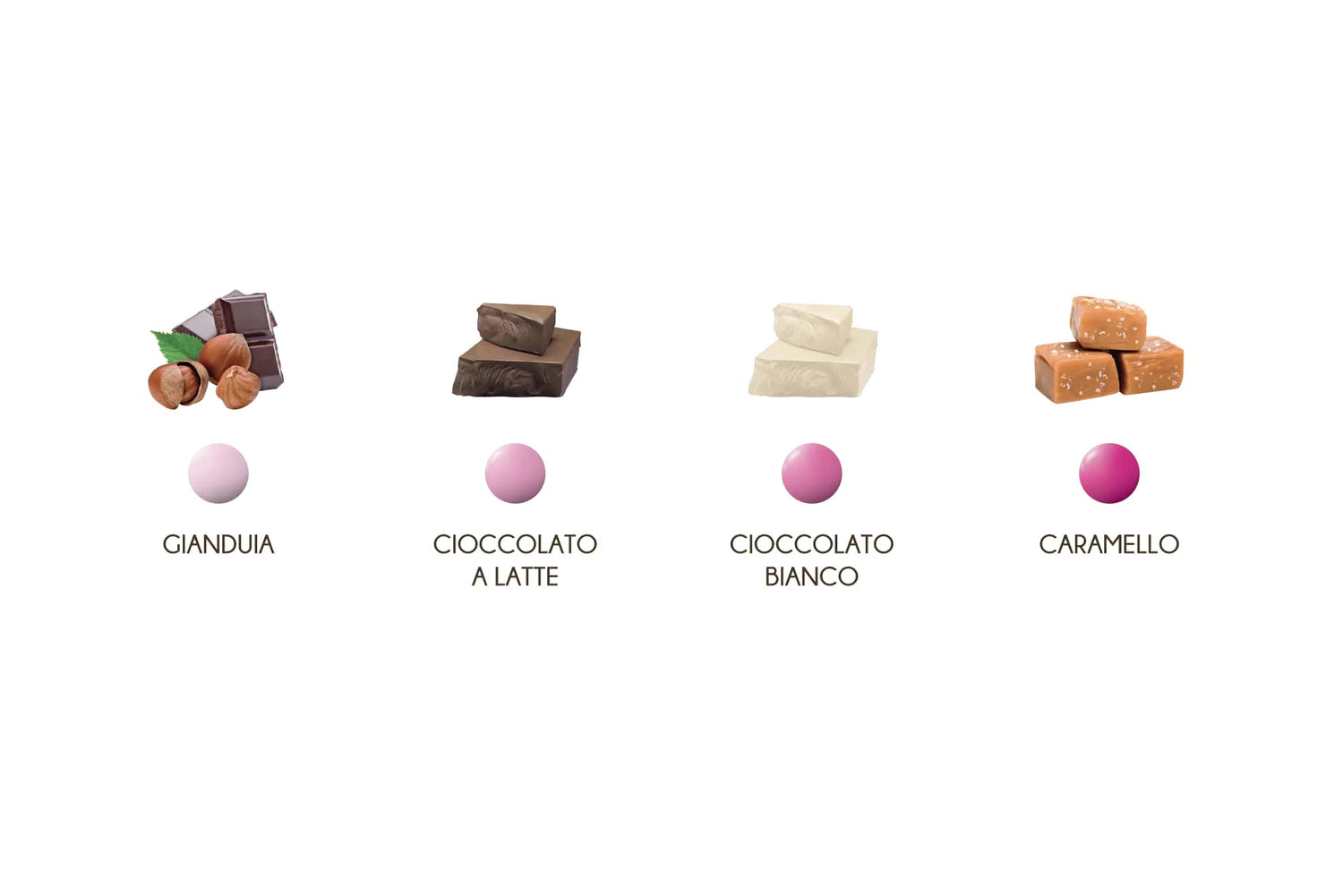 • Caramel, White Chocolate, Milk Chocolate and Gianduia