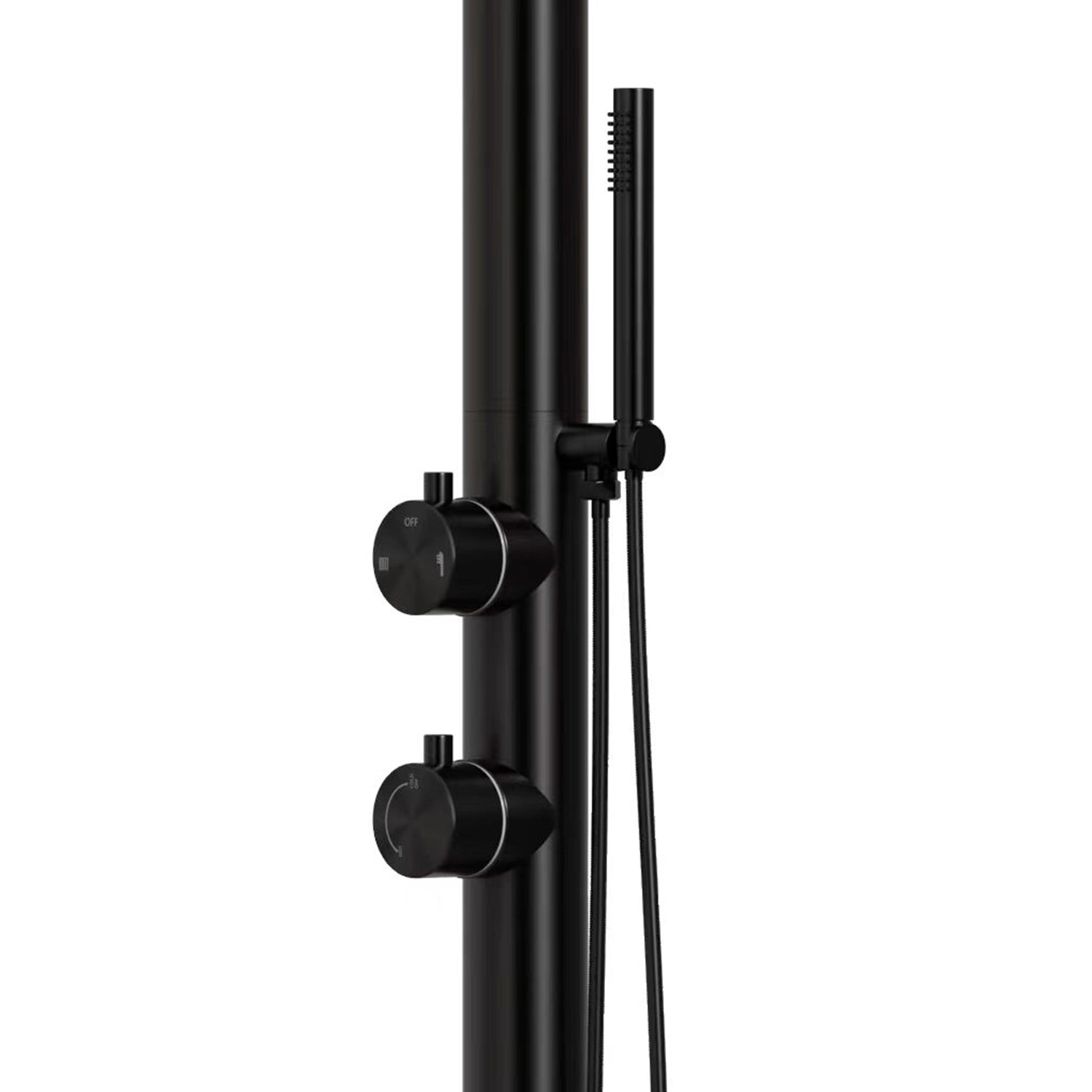 The shower with hand shower model LUNA D NERA is a shining example of how functionality can meet design. Made of Aisi Inox 316L, this shower offers inlet for hot and cold water and adapts perfectly to any type of outdoor installation. The black stainless steel shower column not only adds a touch of class but also guarantees exceptional durability thanks to the quality of the steel used.