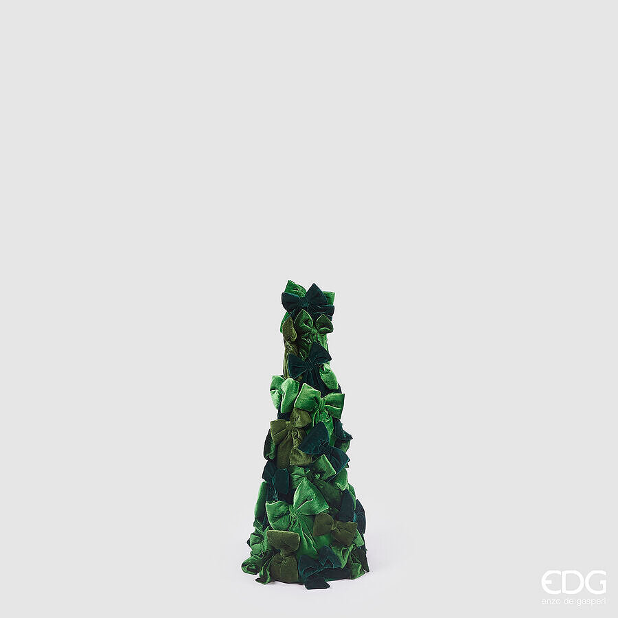 The EDG Enzo De Gasperi decorative cone with green velvet bows is a design element perfect for enhancing festive environments with taste and style. Crafted with care and entirely covered in soft, tone-on-tone velvet bows , it creates a sophisticated and modern visual effect.