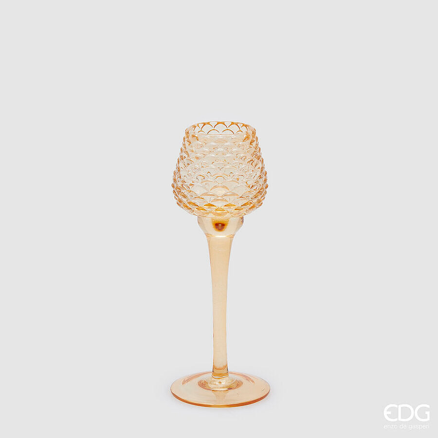 EDG Enzo De Gasperi Candle Holder Pine Cone Glass Christmas H 21.5 Cm D 7.5 Cm Amber