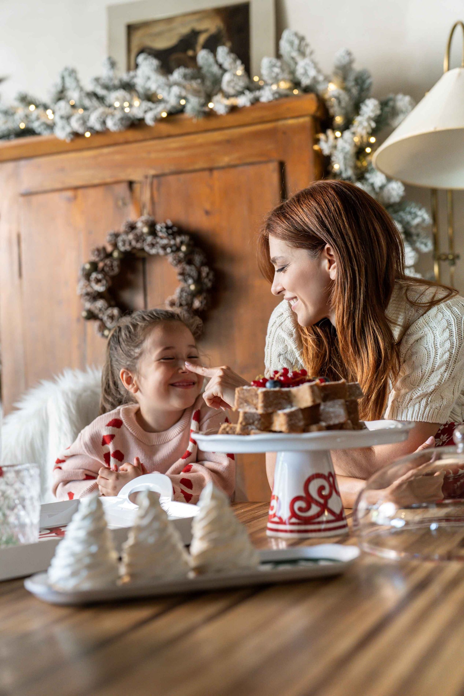 🍰 Elegant and festive design – red decorations on a white background for a touch of class during the holidays