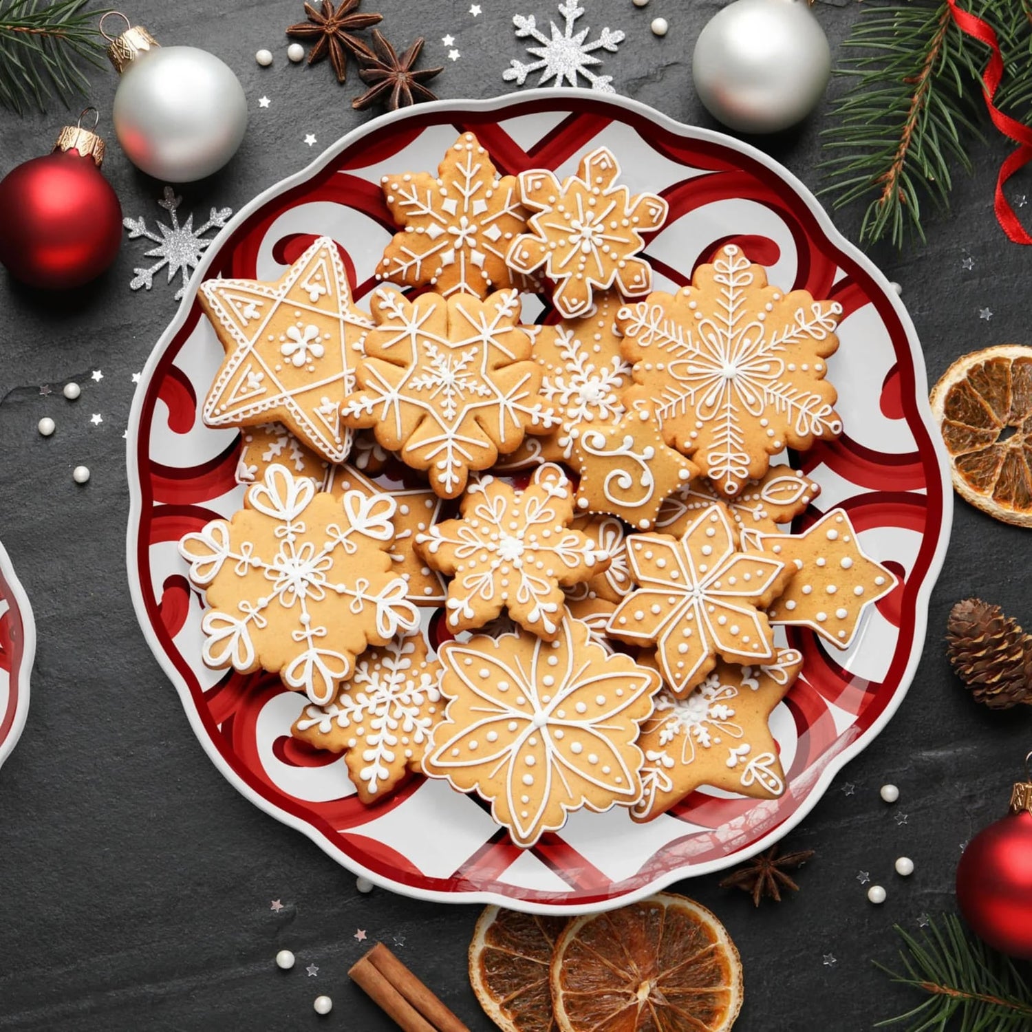 🍽️ Refined and festive design – red decorations on a white background that add charm and harmony to the table.