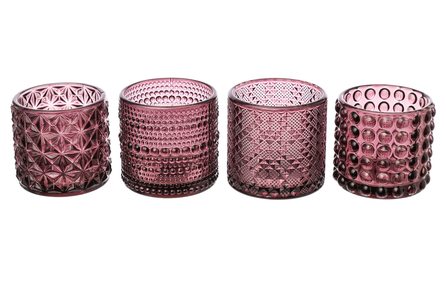 ARPIMEX Glass Candle Holder Jars, Diameter 7 cm, Height 6.8 cm, Pink Mix, 4 Pieces
