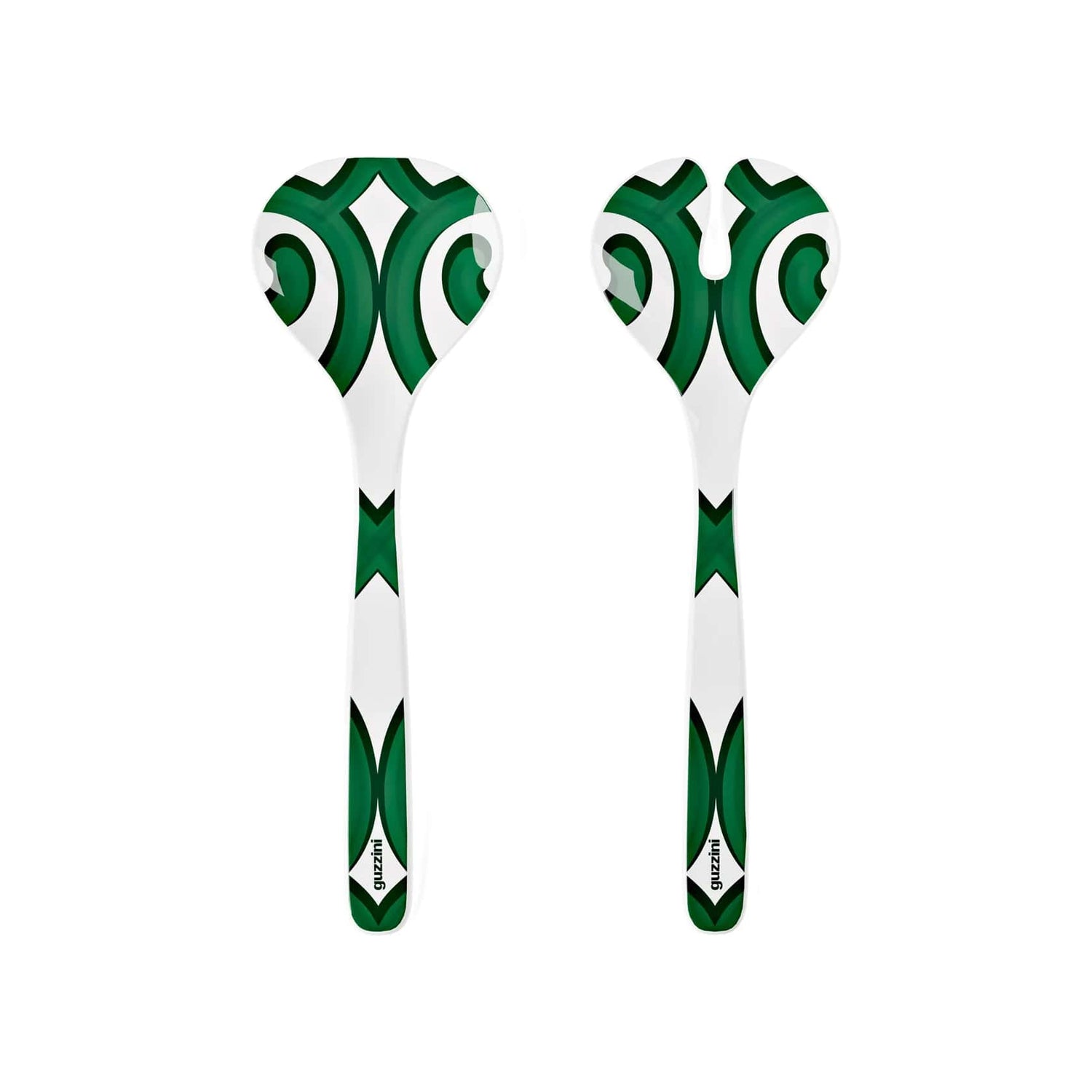 🎄 GUZZINI Harmonia Christmas Salad Servers – White and Green (29.8 x 10 cm)