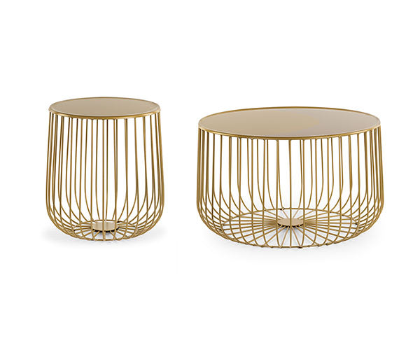 Tone On Tone Set of 2 Gold Metal Coffee Tables D 380 mm H 415 mm D 600 mm H 370 mm