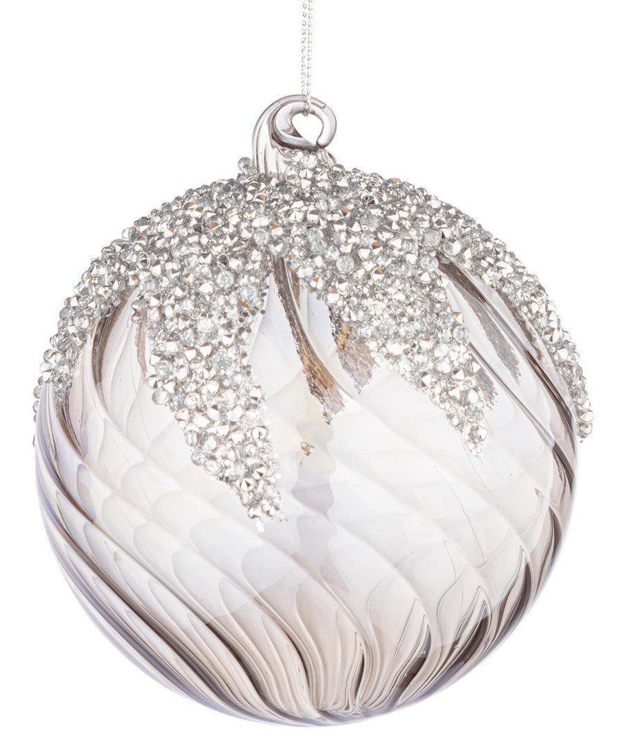 ๐ Bizzotto Vortex Christmas Ball ร 100 mm โ Grey Glass with Gold Details