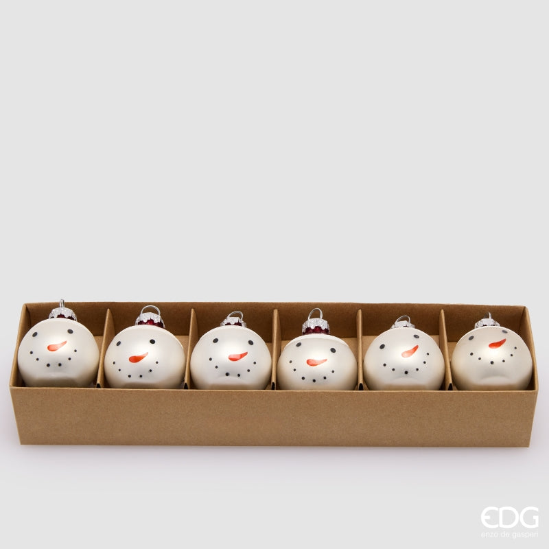 ☃️ Glass Snowman Christmas Ball Placeholders – EDG Enzo De Gasperi D4 cm (Set of 6) White and Red 🎅🎄✨