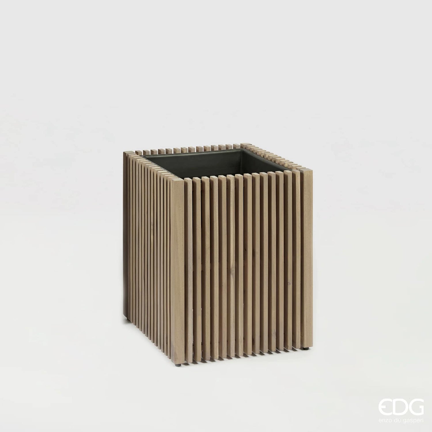 EDG Enzo De Gasperi Vase Square Strips Acacia Wood Grey 50 x 42 x 42 Cm