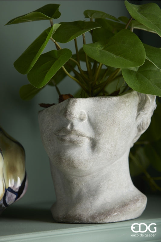 EDG Enzo De Gasperi Cement Vase Half Head H 18 Cm L 20 Cm L 18 Cm Light Grey Waterproof