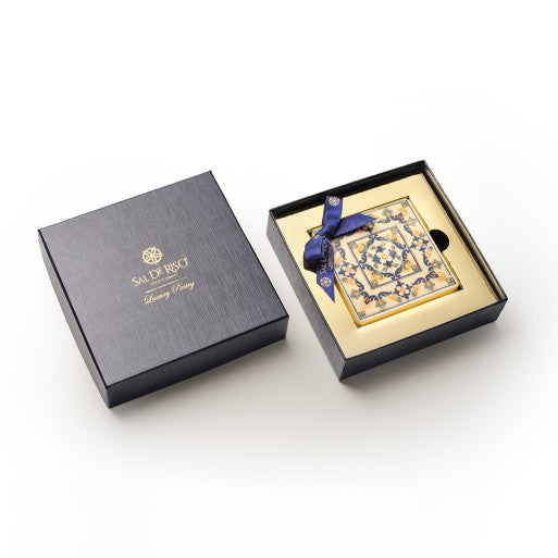 A refined white chocolate and lemon tile, decorated like authentic Vietri majolica . A traditional artisanal product from the Amalfi Coast, ideal as a gourmet gift, wedding favor, or sweet reminder of Campania's traditions.