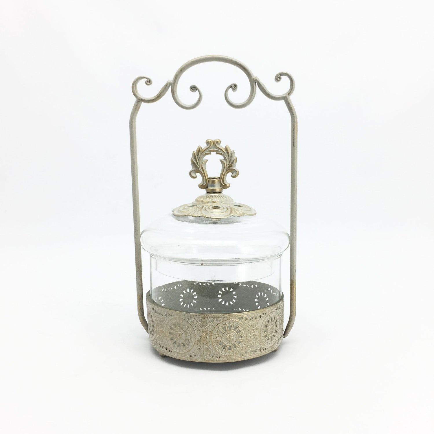 Wicker Box Confetti Holder with Metal and Glass Handle Gold and Gray