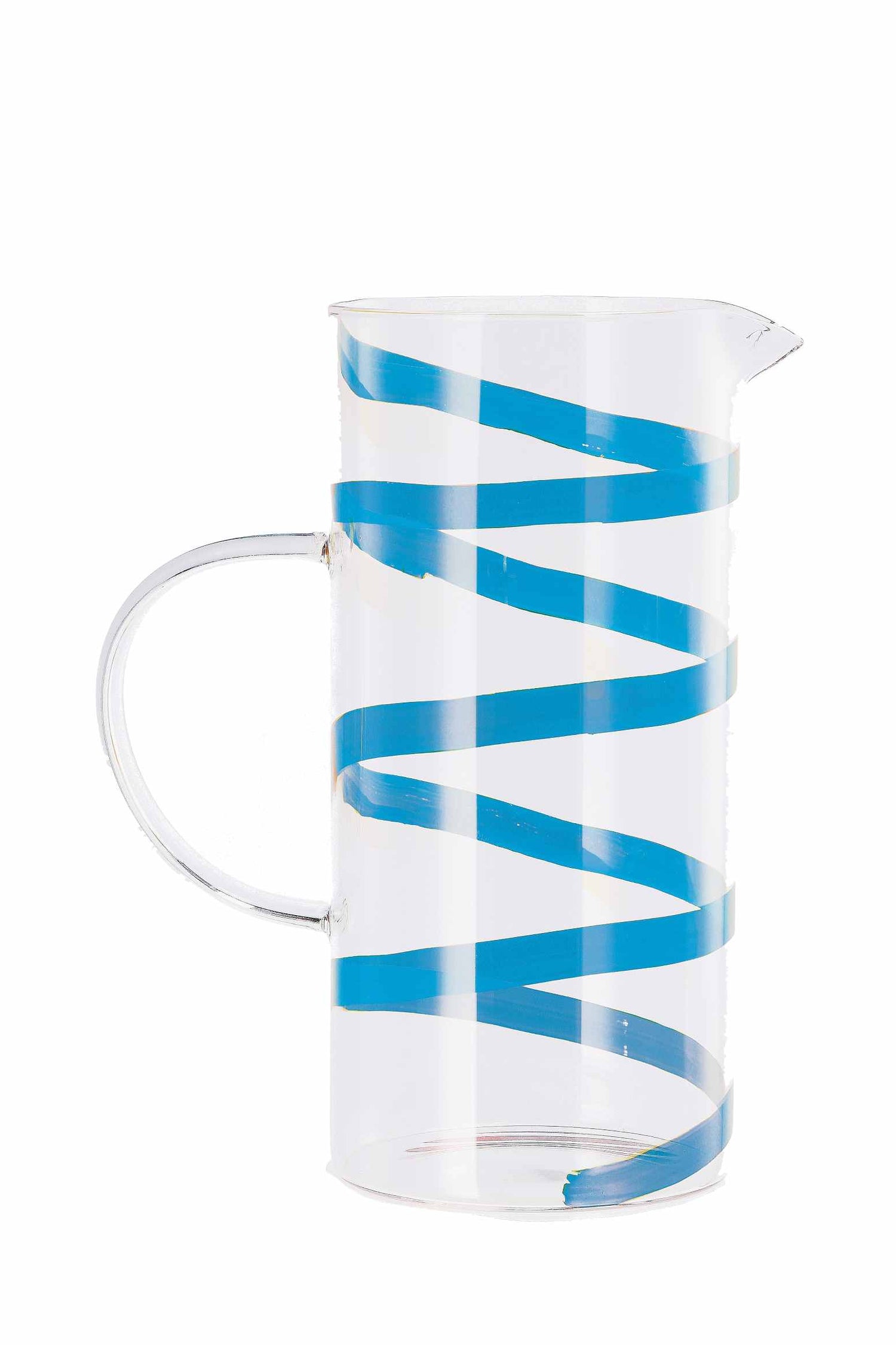 Regalo Italiano Caraffa Vetro 1,42 Lt D 17,5 Cm H 22 Cm Ass. Decorazione Verde Giallo Rosa Blu 1 Pz