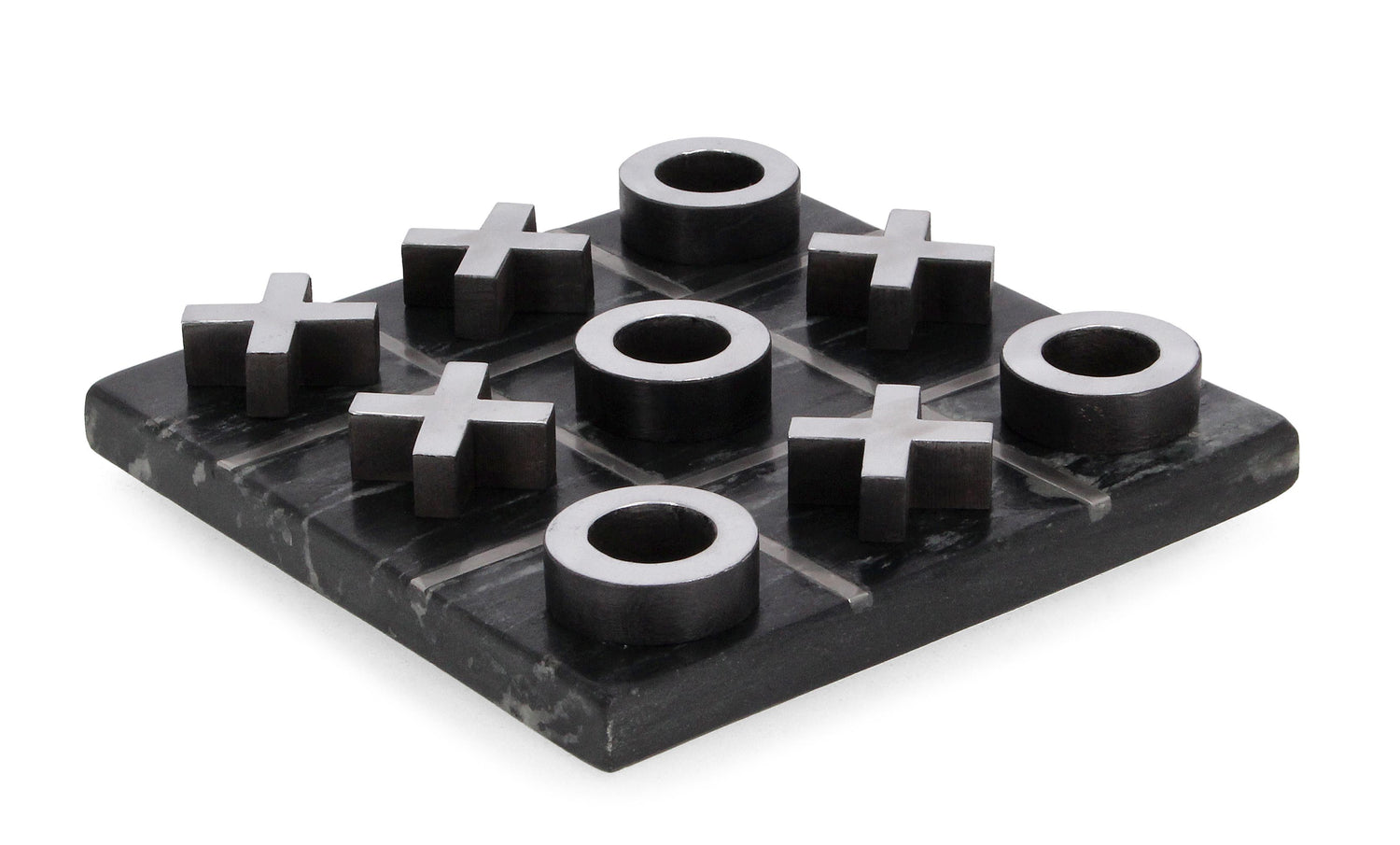 Rendi le tue decorazioni natalizie ancora più originali con la decorazione "Tris Fortune" di Bizzotto. Realizzata in un elegante mix di materiali come legno di mango, marmo e metallo, questa decorazione da tavolo nero e argento richiama il classico gioco del tris, trasformandolo in un oggetto decorativo raffinato e creativo.