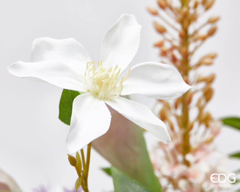 EDG Enzo De Gasperi Composizione Orchidea Phalaenopsis Artificiale H 92 Cm con Foglie e Vaso White Violet