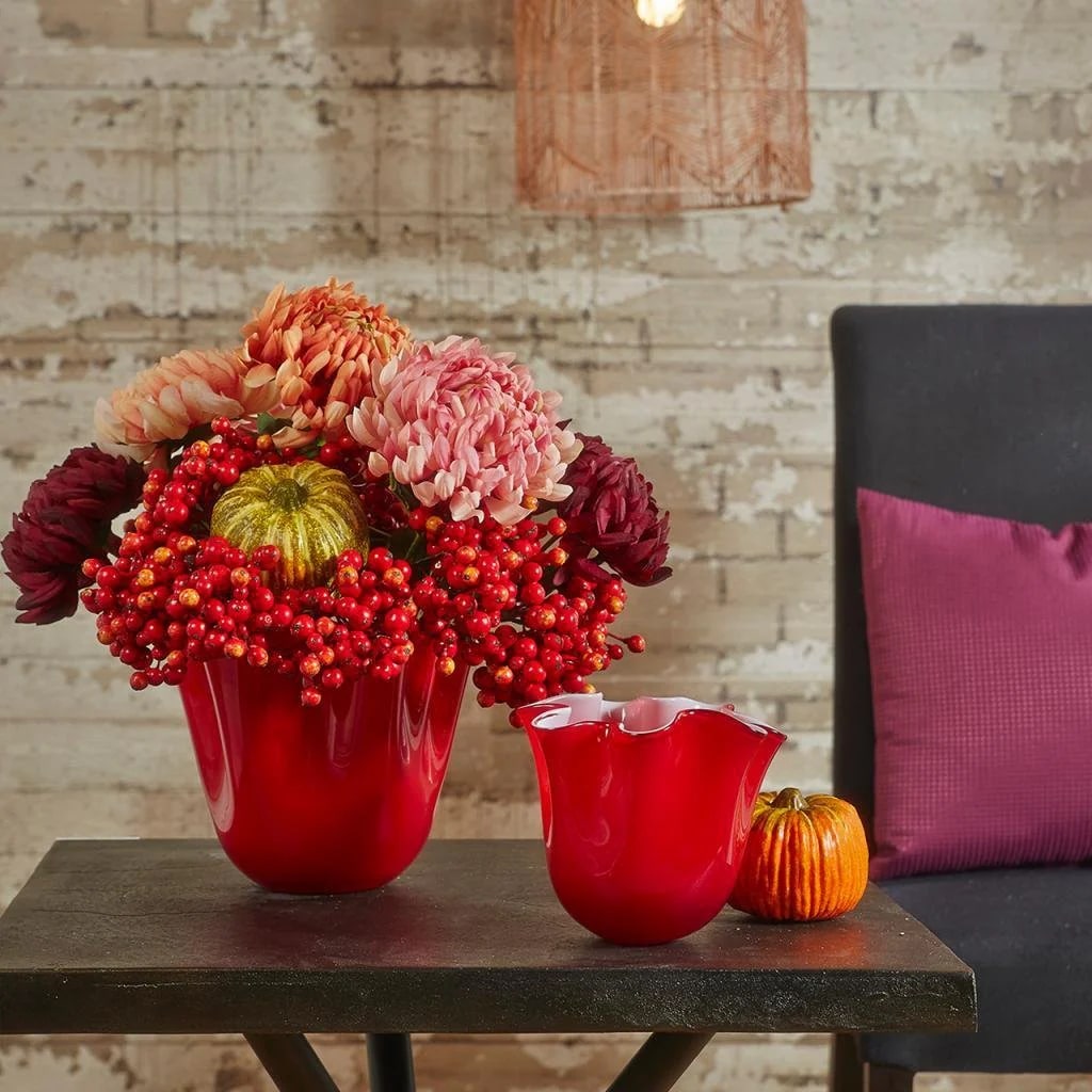 EDG Enzo De Gasperi Vaso Drappo Vetro H 18 Cm D 21 Cm Red