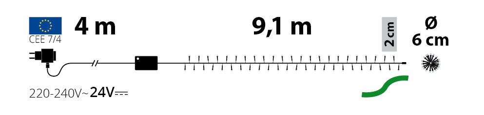 - Dimensioni 9,1 Mt + 4 Mt Cavo