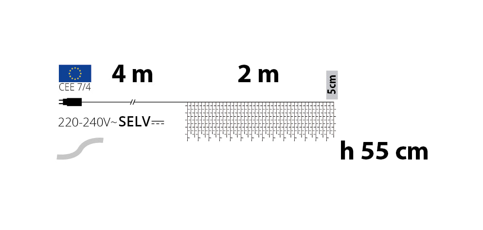 Lotti Tenda Natale Ice Light Irregolare 420 Led 2 Mt x 0,55 Mt + 4 Mt Cavo Bianco Caldo