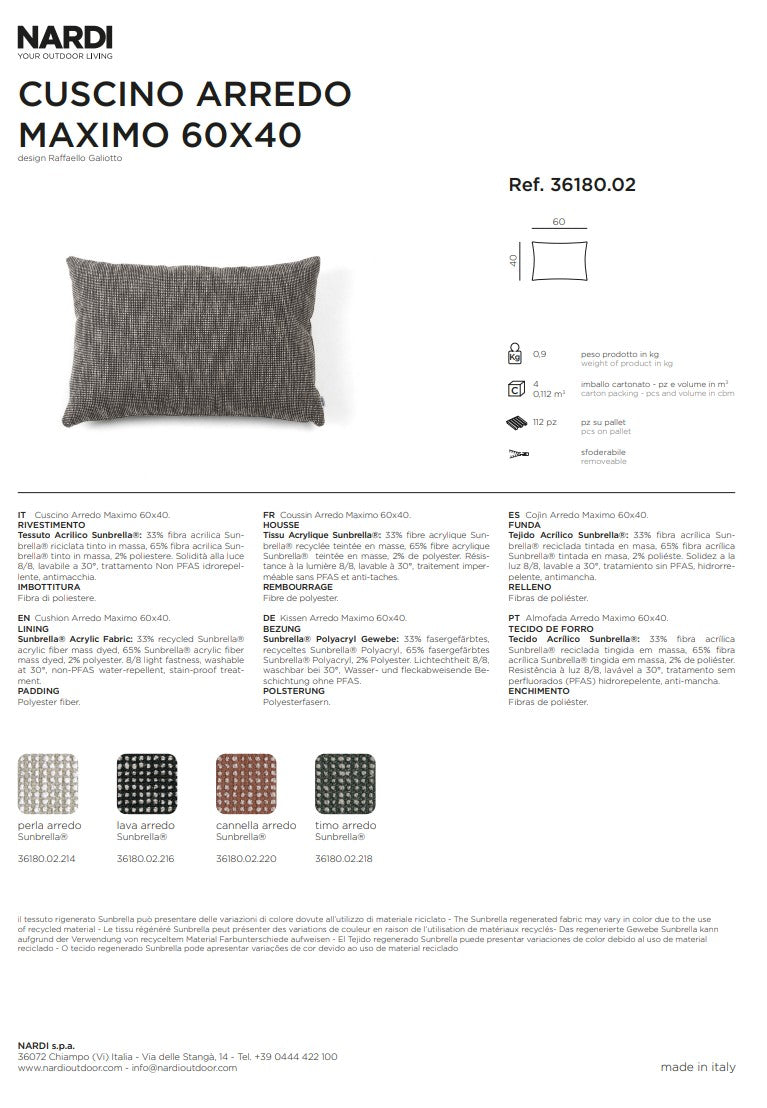 Nardi Cuscino Arredo Maximo 60 x 40 Cm Perla Sunbrella