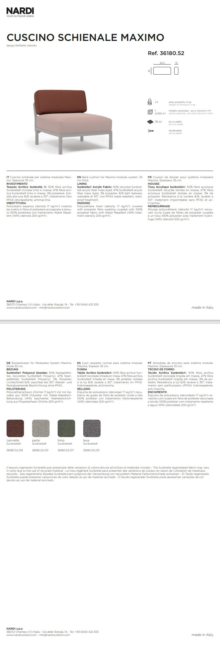 Nardi Cuscino Schienale Maximo per Sistema Modulare Timo Sunbrella