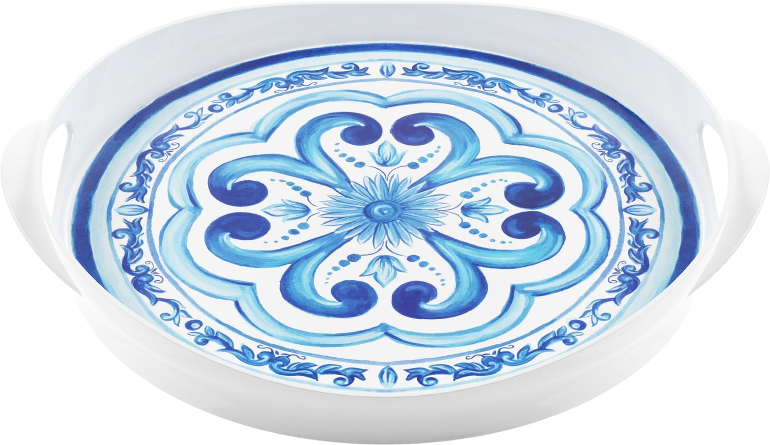 GUZZINI Vassoio Tondo con Manici Decoro Blues 40,5 x 46 x 6 Cm Melamina Table Decor