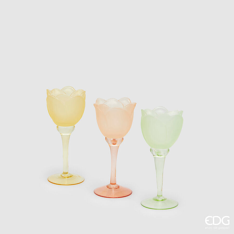 EDG Enzo De Gasperi Portacandela Tulipano Satin H 19 Cm D 8,5 Cm 3 Ass. Yellow Green 1 Pz