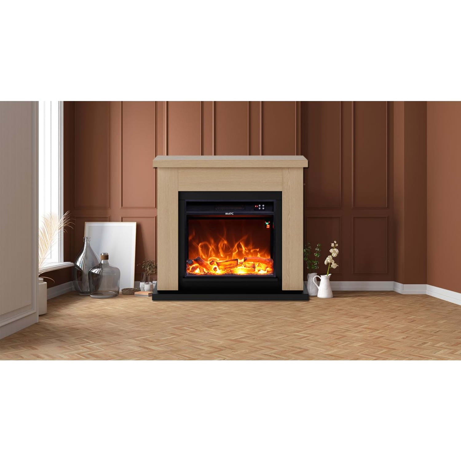 SINED Mpc Camino Asciano Camino Da Terra Con Bruciatore Da 1500w Effetto Fiamma Led Rovere