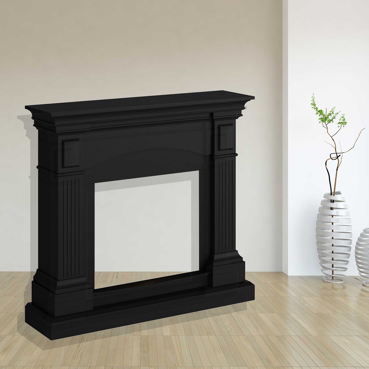 Cornice per Caminetto da pavimento modello CETONA colore nero profondo Cornice in stile classico per caminetto elettrico.