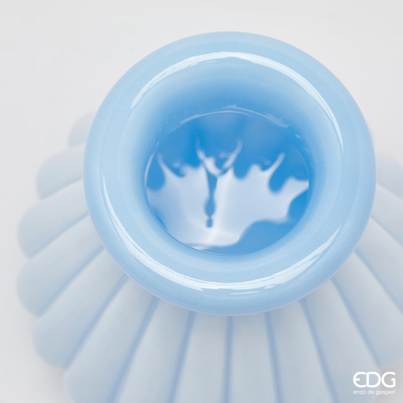 EDG Enzo De Gasperi Vaso Righe con Bordo H 13 Cm D 12 Cm Waterproof Vetro Celeste