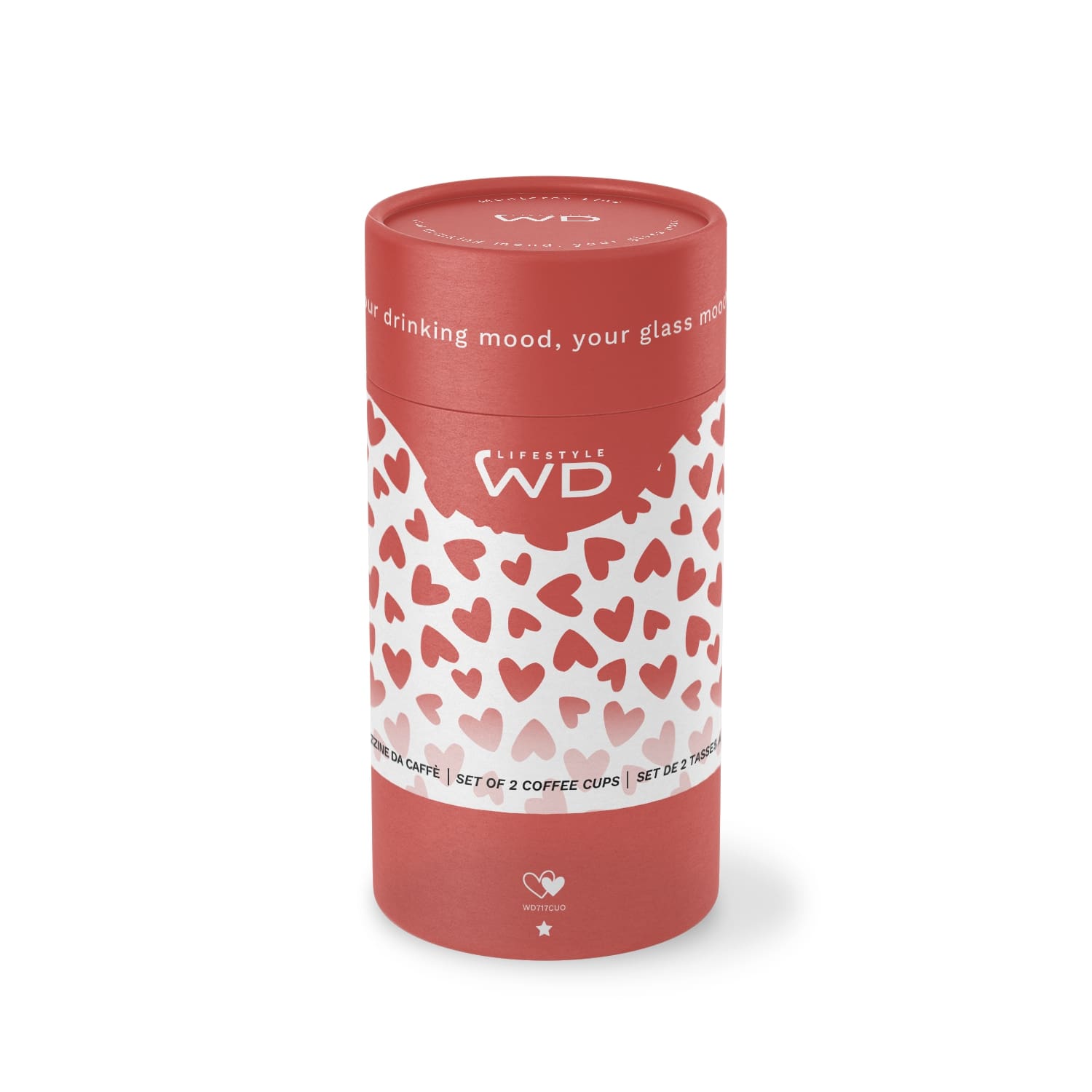 WD LifeStyle Set 2 Tazzine Caffè Vetro Borosilicato 130 Ml Decoro Cuori