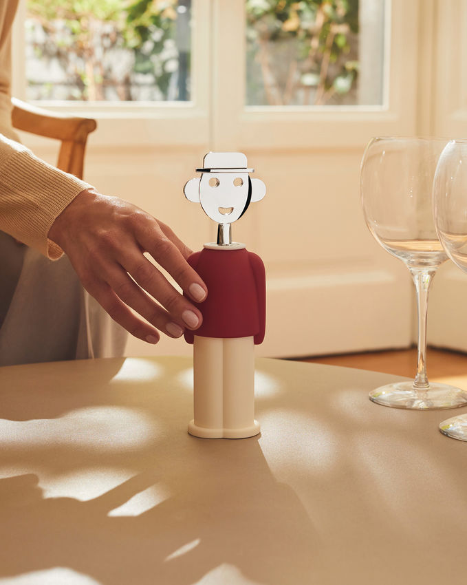Il cavatappi Alessandro M. di Alessi è un accessorio iconico dal design originale e riconoscibile. Realizzato in resina termoplastica con finitura azzurro chiaro e componenti in metallo lucidato, unisce funzionalità, praticità e un’estetica divertente tipica delle creazioni di Alessandro Mendini.