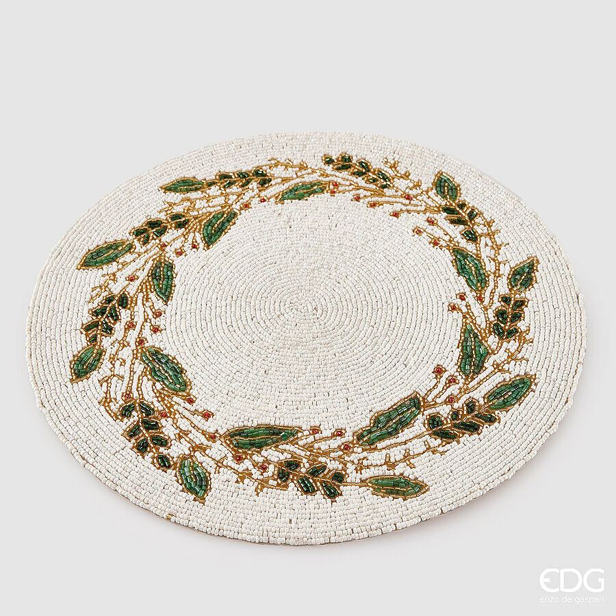 EDG Enzo De Gasperi Sottopiatto Agrifoglio con Perline Rotondo Natale D 36 Cm White Green