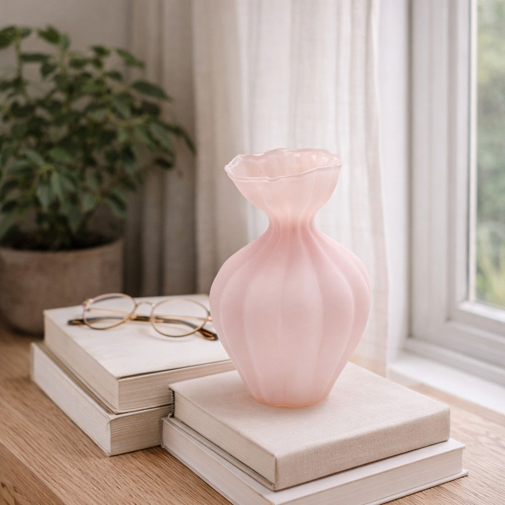 EDG Enzo De Gasperi – Vaso Flow Sinuoso in Vetro Satinato Pink Waterproof H 30,5 cm D 19,5 cm