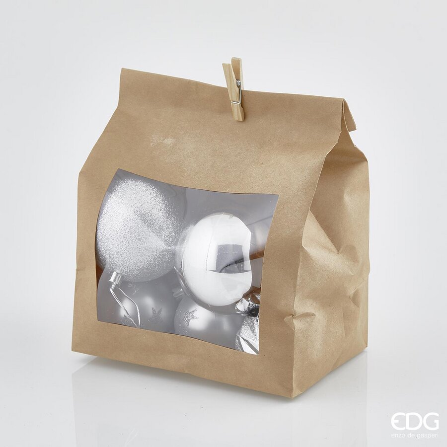 EDG Enzo De Gasperi Sacchetto Natale Palle Silver D 8 Cm D 6 Cm Cf 10 Pz