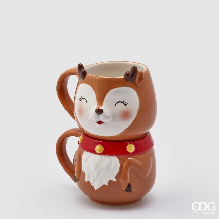 EDG Enzo De Gasperi Set 2 Tazze Renna Natale Impilabili H 18 Cm D 10 Cm White Brown