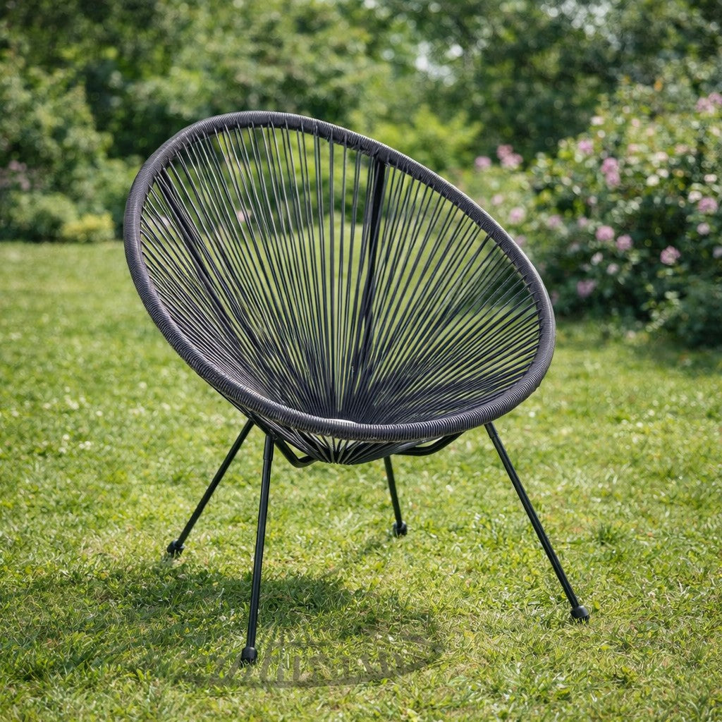 La struttura in metallo resistente assicura solidità e stabilità, mentre la seduta intrecciata dal profilo avvolgente garantisce comfort e leggerezza visiva. Le gambe sottili con piedini di appoggio offrono equilibrio e protezione delle superfici, rendendola adatta a diverse tipologie di pavimentazione esterna.