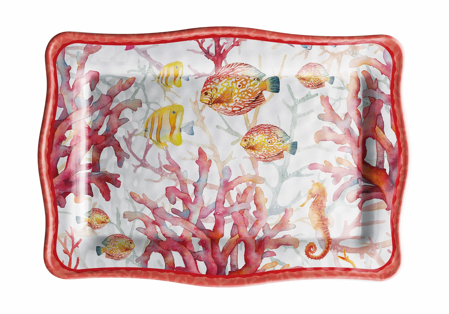 Regalo Italiano Vassoio Rettangolare Melamina Shell 30 x 21 Cm H 2 Cm Rosso 1 Pz