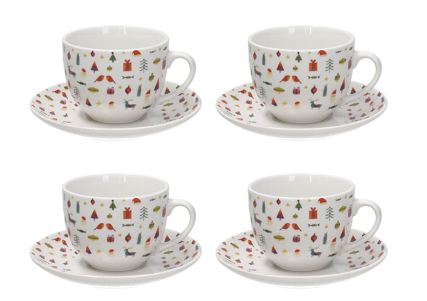 Tognana Servizio Natale 4 Tazze Cappuccino con Piattino Atollo Candy Bianco Rosso