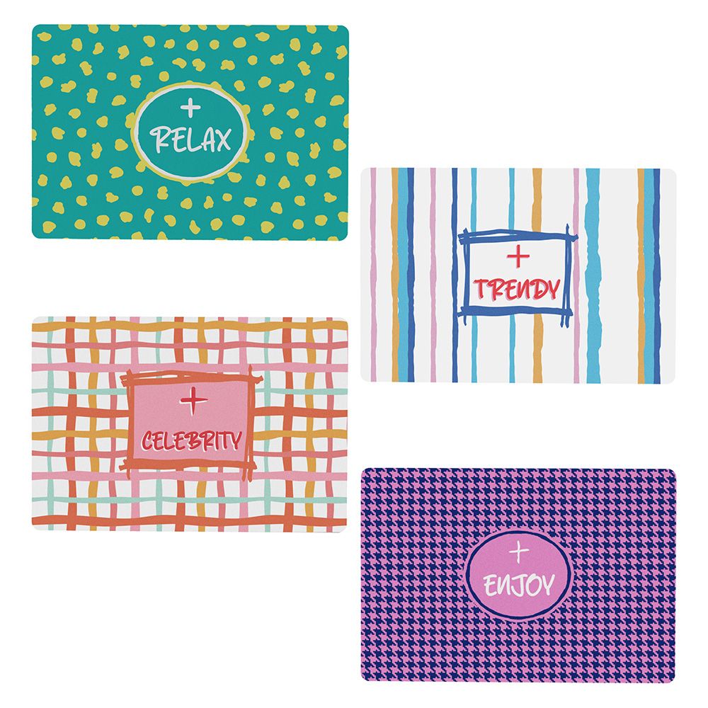 Il set di tovagliette Glamour Good Vibes Tognana è pensato per portare colore e personalità sulla tavola. Il set comprende 4 tovagliette con grafiche moderne e motivazionali – Relax, Trendy, Celebrity, Enjoy – caratterizzate da pattern vivaci e uno stile contemporaneo, perfetto per una mise en place informale e creativa.