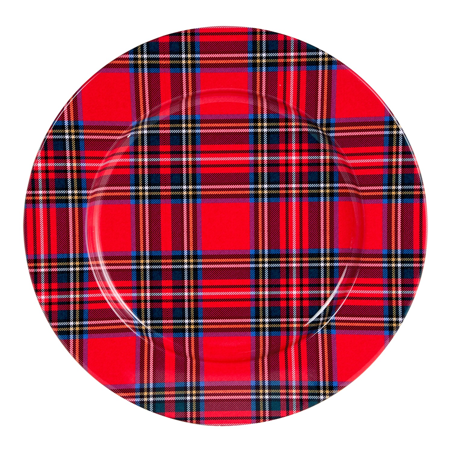 Porta lo stile caldo e accogliente del Natale scozzese sulla tua tavola con il Piatto Decorativo ARPIMEX in fantasia tartan 🎁🍷. Realizzato in metallo resistente, unisce eleganza e tradizione con il suo intramontabile motivo scozzese rosso 🔴🖤.