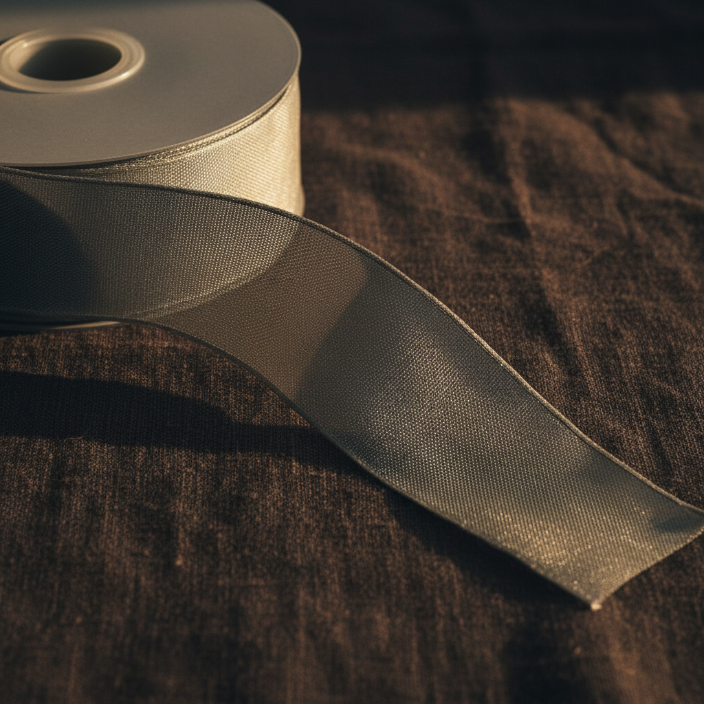 Pronto all'uso: tagliare a misura con forbici normali o termiche per un bordo netto e anti-sfilacciatura sul taffetà argento.